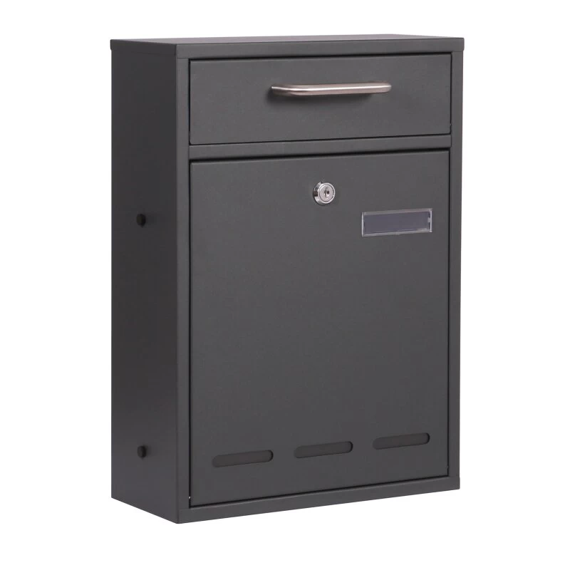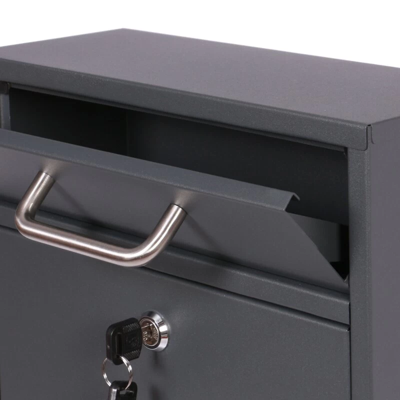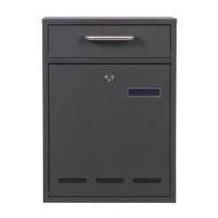 Dieser anthrazitfarbene Standbriefkasten in schlichtem, elegantem Design ist sowohl für den Innen- als auch für den Außenbereich geeignet und bietet viel Platz für Briefe, Zeitschriften und größere Postsendungen.