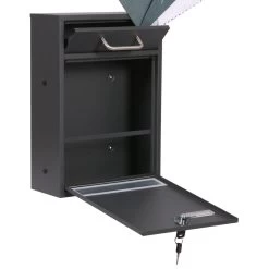 Dank den integrierten Sichtfenstern kann man erkennen, ob sich Post im Briefkasten befindet. Damit Sie auch an den Inhalt des abschließbaren Briefkastens gelangen können, befinden sich im Lieferumfang zwei Schlüssel. Um große Sendungen beim Öffnen des Postkastens am Herausfallen zu hindern, ist eine Querstrebe im Inneren angebracht. Dank den großzügigen Maßen bietet der Briefkasten genügend Platz für Ihre Briefsendungen, selbst wenn Sie einmal verreist sind.