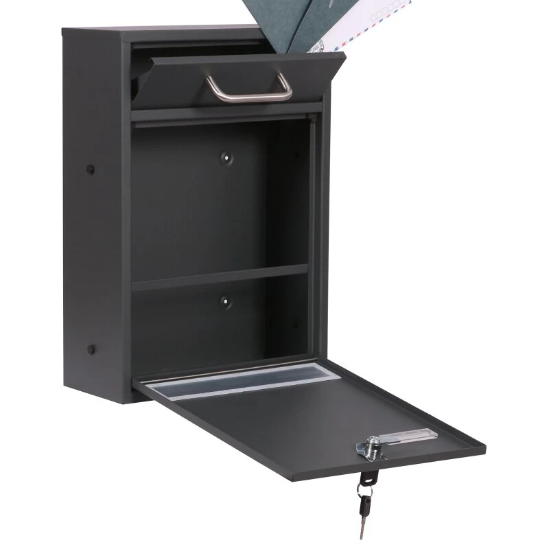 Die Postbox verfügt über einen großen Briefschlitz, so dass auch Zeitschriften und Magazine eingeworfen werden können, ohne geknickt zu werden. Die praktische Einwurfklappe schützt Ihre Post gegen eindringendes Wasser. Zudem lässt sie sich nur in einem 45°-Winkel öffnen und verhindert so, dass Postsendungen unbefugt herausgenommen werden können. Der Griff der Briefklappe besteht aus Edelstahl 304.