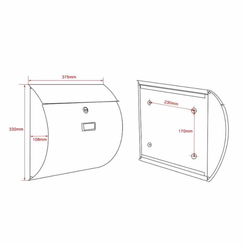 Der Briefkasten verfügt über einen großen Briefschlitz, über eine abschließbare vordere Entnahmeklappe und ein Beschriftungsfeld für den Namen des Bewohners.