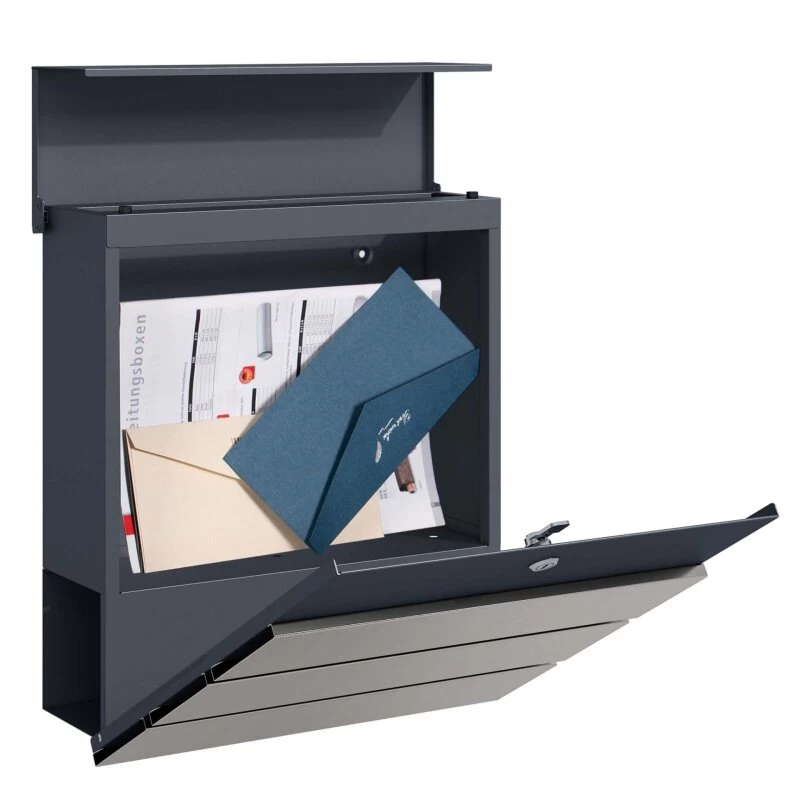 Briefkasten ANTHRAZIT Wandbriefkasten Postkasten Zeitungsfach mit Edelstahl