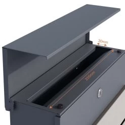 Briefkasten in RAL 7016 Anthrazit Grau Feinstruktur pulverbeschichtet mit Edelstahl – modernes und zugleich elegantes Design zeichnen diesen Toppseller aus dem Hause Zalafino aus. Der Wand oder auch Standbriefkasten verfügt über einen großen Briefschlitz, so dass auch größere Sendungen eingeworfen werden können. Montage-Material ist ebenfalls im Lieferumfang enthalten. Weiter befindet sich auf der unteren Seite ein Zeitungsfach, so dass Zeitungen nicht mehr vor der Haustüre im Nassen abgelegt werden müssen, sondern einen trockenen Platz haben, bis sie ins Haus geholt werden.