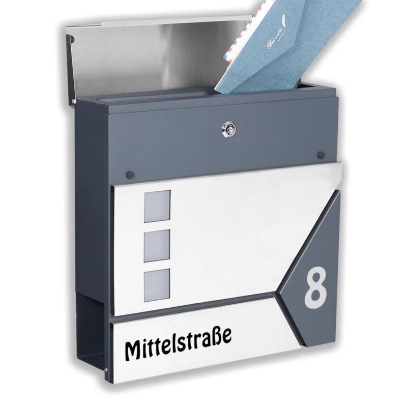 Mit einem Briefkasten kann die Optik des Außenbereichs beeinflusst werden. Daher sollte ein Briefkasten mehr können, als nur Post aufzubewahren. Vielmehr ist er eine dekorative Ergänzung des eigenen Wohnkonzepts. Dieser anthrazit-silberfarbene Briefkasten erfüllt die Kriterien und ist die perfekte Verbindung von Moderne und Funktion.
