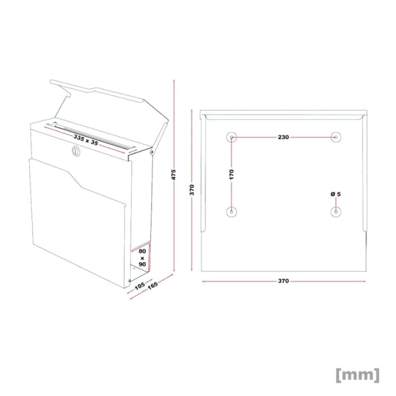 Maße Briefkasten: 37 x 37 x 10,5 cm