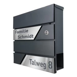 Design Briefkasten mit FUNKKLINGEL ANTHRAZIT mit Edelstahl Laser Namensblenden