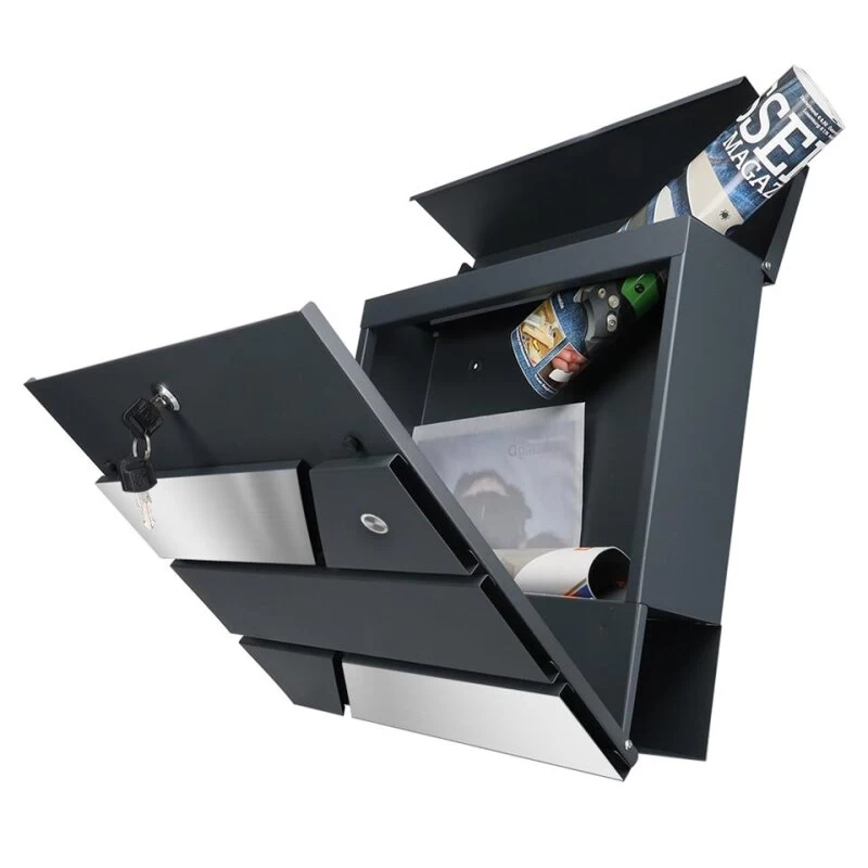 Designer Funk Briefkasten der Besonderen Art aus beschichtetem Stahl in zeitlos schicker Optik. Der Briefkasten verfügt über einen großen Briefschlitz, ist abschließbar und wird mit zwei Schlüsseln geliefert. Montagematerial ist ebenfalls im Lieferumfang enthalten. Weiter befindet sich auf der unteren Seite ein Zeitungsfach, so dass Zeitungen nicht mehr vor der Haustüre im Nassen abgelegt werden müssen, sondern einen trockenen Platz haben, bis sie ins Haus geholt werden. Die Beschriftung erfolgt im Lasercut-Verfahren und ist ein echtes Highlight.