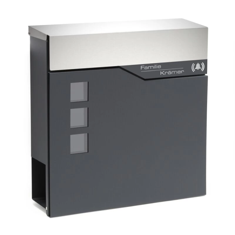 Briefkasten mit FUNKKLINGEL ANTHRAZIT Postkasten Wandbriefkasten TOMA
