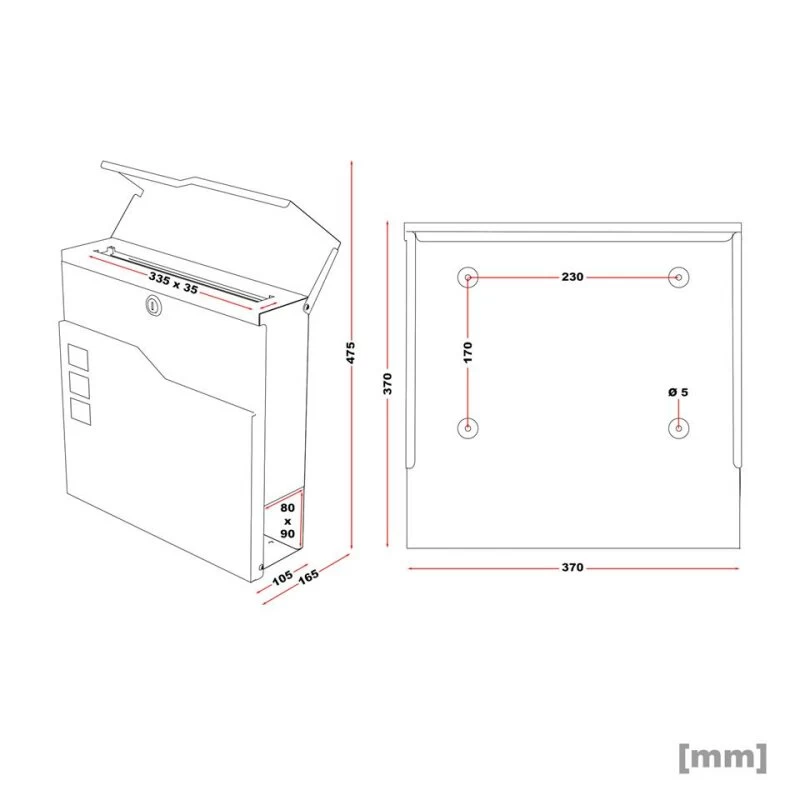 Maße Briefkasten: 37 x 37 x 10,5 cm