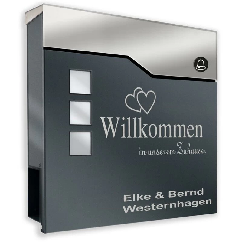 Briefkasten mit integrierter FUNKKLINGEL anthrazit Willfried