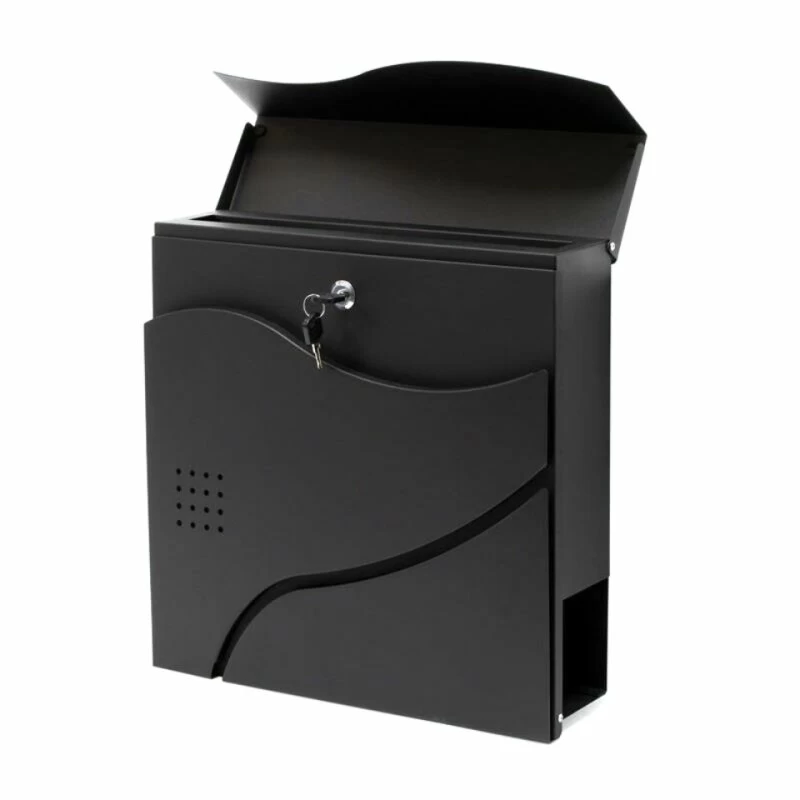 Designer Briefkasten aus galvanisiertem Stahl mit pulverbeschichteter Oberfläche in zeitlos schicker Optik. Der Briefkasten verfügt über einen großen Briefschlitz, so dass auch größere Sendungen eingeworfen werden können. Montage-Material ist ebenfalls im Lieferumfang enthalten. Weiter befindet sich auf der unteren Seite ein Zeitungsfach, so dass Zeitungen nicht mehr vor der Haustüre im Nassen abgelegt werden müssen, sondern einen trockenen Platz haben, bis sie ins Haus geholt werden.