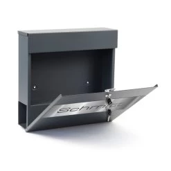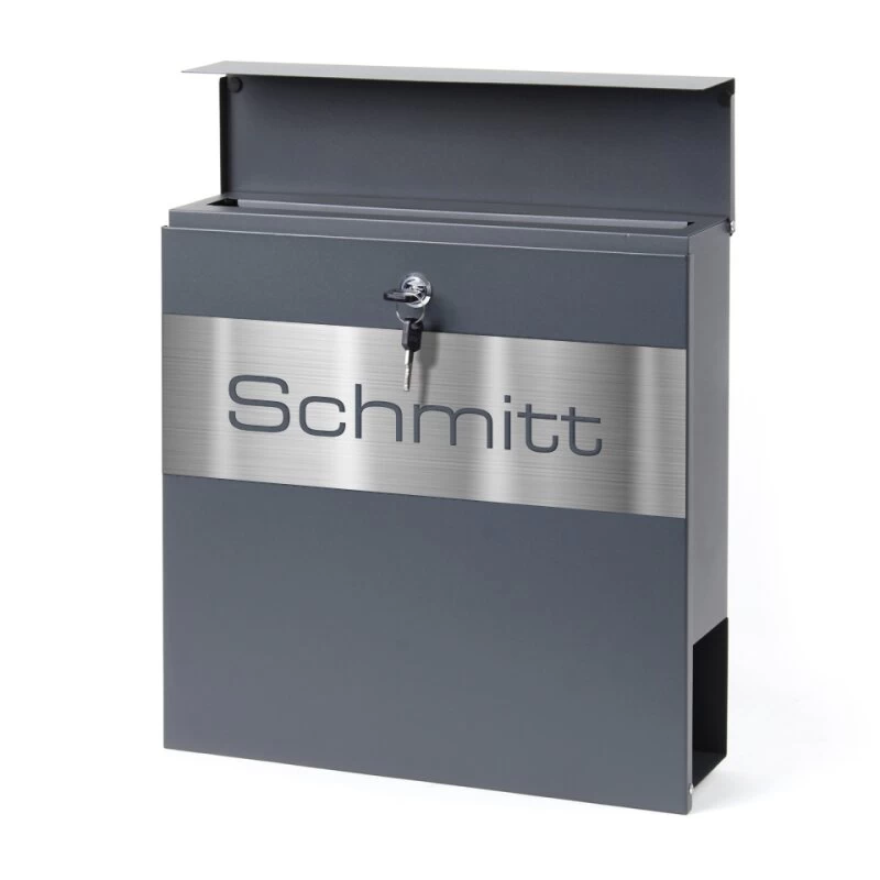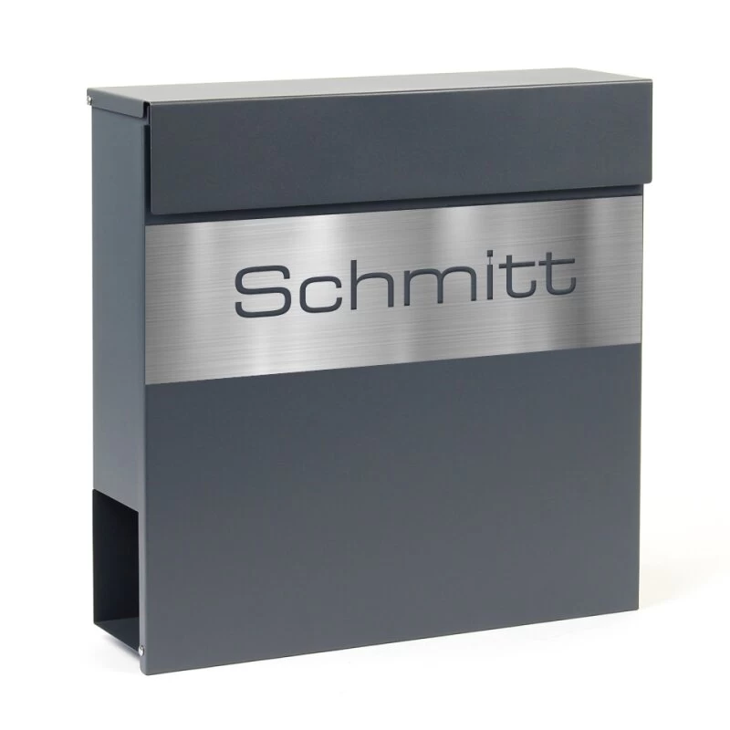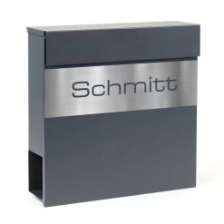 Briefkasten Wandbriefkasten Edelstahl mit Zeitungsfach anthrazit grau inkl. Namensblende