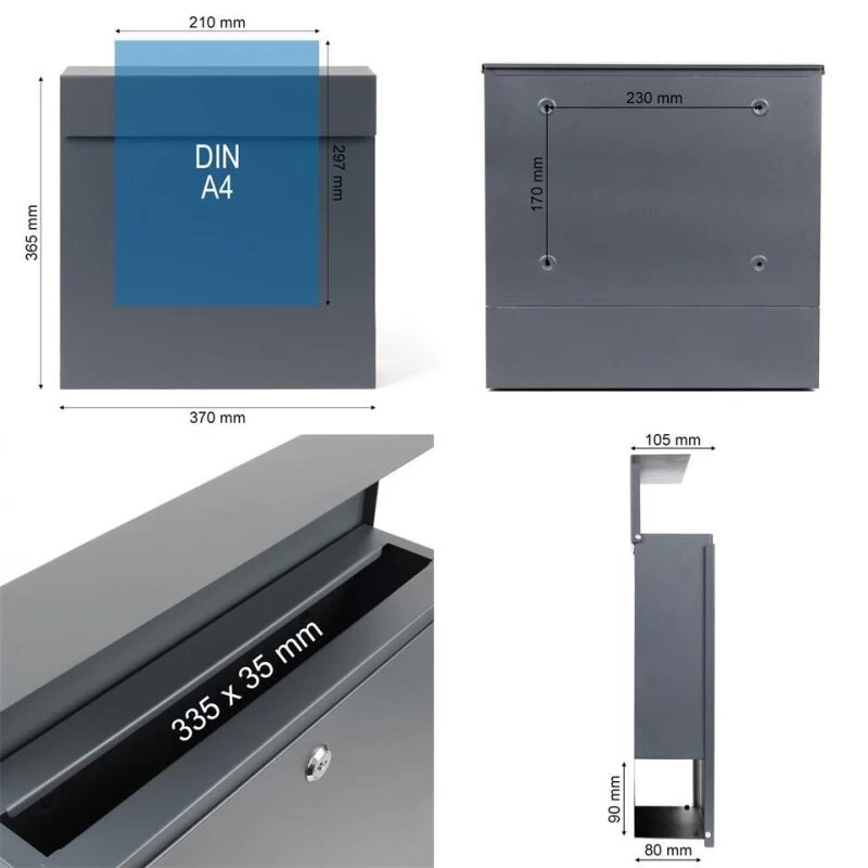 Briefkasten: 370 x 370 x 105mm