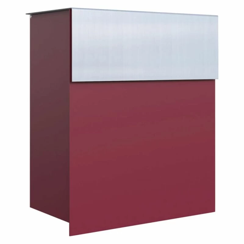 Briefkasten Wandbriefkasten Groove ROT RAL 3004 mit Edelstahlklappe