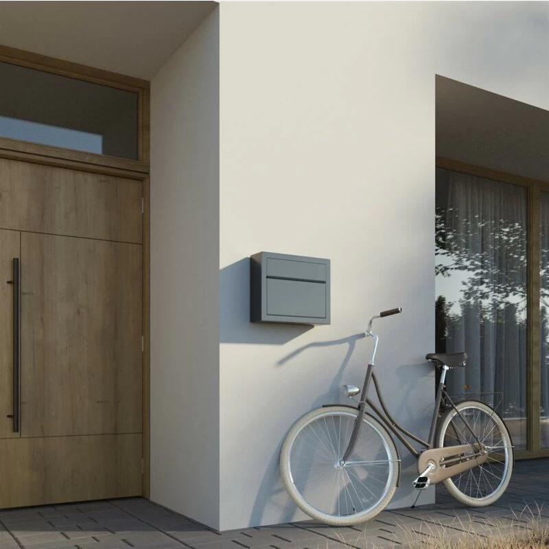 Briefkasten Wandbriefkasten Jazz Grau Metallic RAL 9007 mit Edelstahlklappe