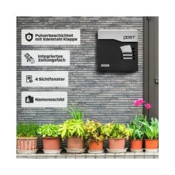 Außerdem ist der Design-Briefkasten abschließbar und durch das große