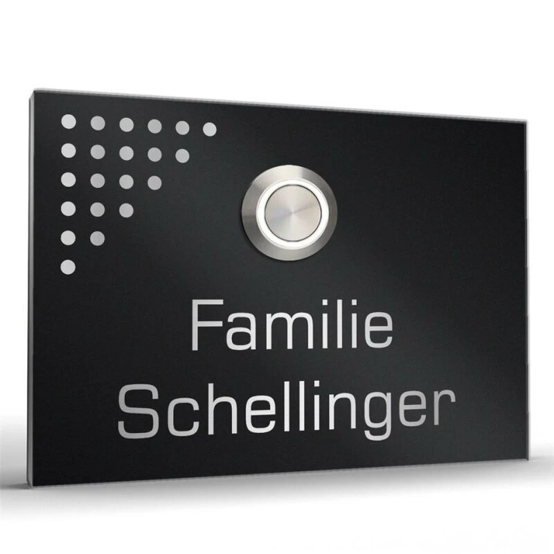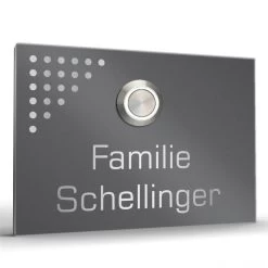 Wenn Sie auf der Suche nach einer stylisch, aber schlichten und zurückhaltenden Haustürklingel für Ihr Einfamilien- oder Reihenhaus sind, dann haben Sie es hier gefunden. Die Haustürklingel besteht aus hochwertigem Edelstahl in V2A-Qualität mit einer edlen, fein geschliffenen Oberfläche in Längsstruktur. Der Familienname wird in einem schönen Kontrast dazu per schwarzer CO2-Laserbeschriftung aufgebracht. Die witterungsbeständige Haustürklingel wird im Außenbereich keine Qualitätseinbuße erleben.