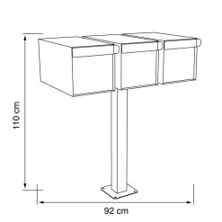 Als freistehender Dreifachbriefkasten eignet er sich für die Bodenmontage auf freier Fläche. Einwurf und Entnahme erfolgen an der Vorderseite über eine massive Frontklappe und ein dahinterliegendes Innentor mit integriertem Einwurfschlitz und Schloss. Das Besondere: Der eingriffsichere Schlitz ermöglich den Einwurf kleiner Päckchen. Die massive Frontklappe schützt das Innentor vor Witterung und lässt sich als stilistisches Element individuell gestalten.