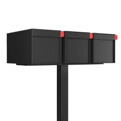 Als freistehender Dreifachbriefkasten eignet er sich für die Bodenmontage auf freier Fläche. Einwurf und Entnahme erfolgen an der Vorderseite über eine massive Frontklappe und ein dahinterliegendes Innentor mit integriertem Einwurfschlitz und Schloss. Das Besondere: Der eingriffsichere Schlitz ermöglich den Einwurf kleiner Päckchen. Die massive Frontklappe schützt das Innentor vor Witterung und lässt sich als stilistisches Element individuell gestalten.