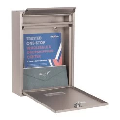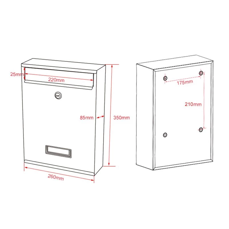 Der Briefkasten verfügt über einen großen Briefschlitz, ein Namensschildfenster und die vordere Entnahmeklappe ist abschließbar.
