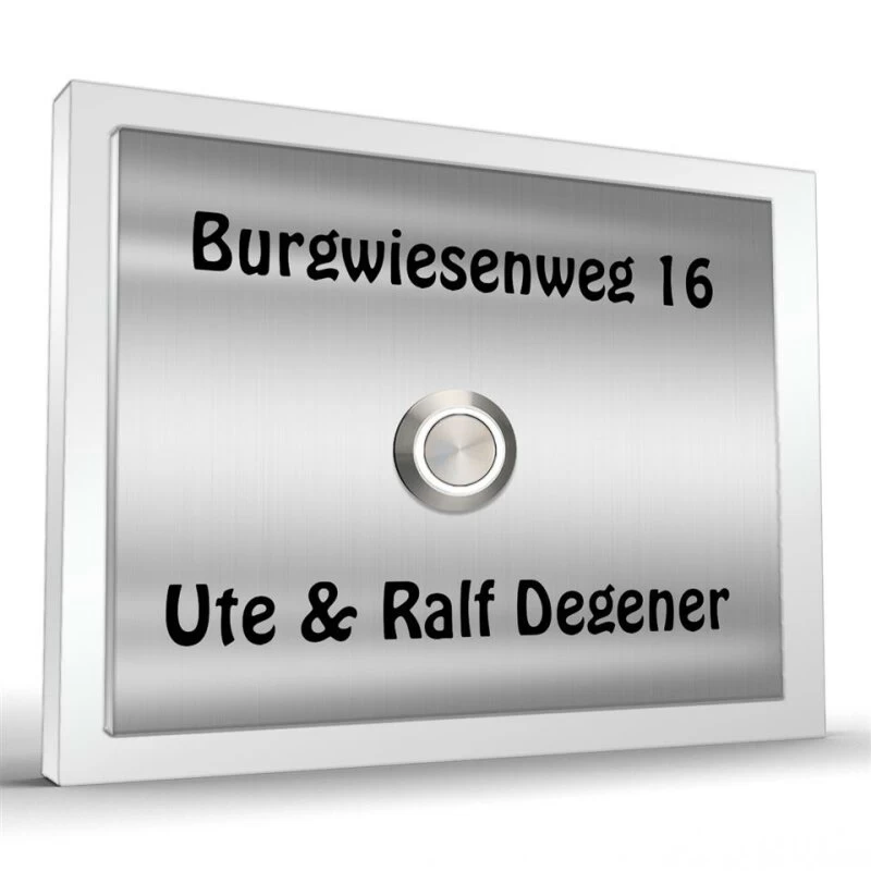 Edelstahlklingel 180x130mm mit Acrylglas weiß hinterlegt