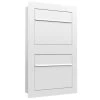 Einwurf und Entnahme erfolgen bei diesem Unterputzbriefkasten von vorne über die Einwurfklappe und eine aufgesetzte Frontklappe.
