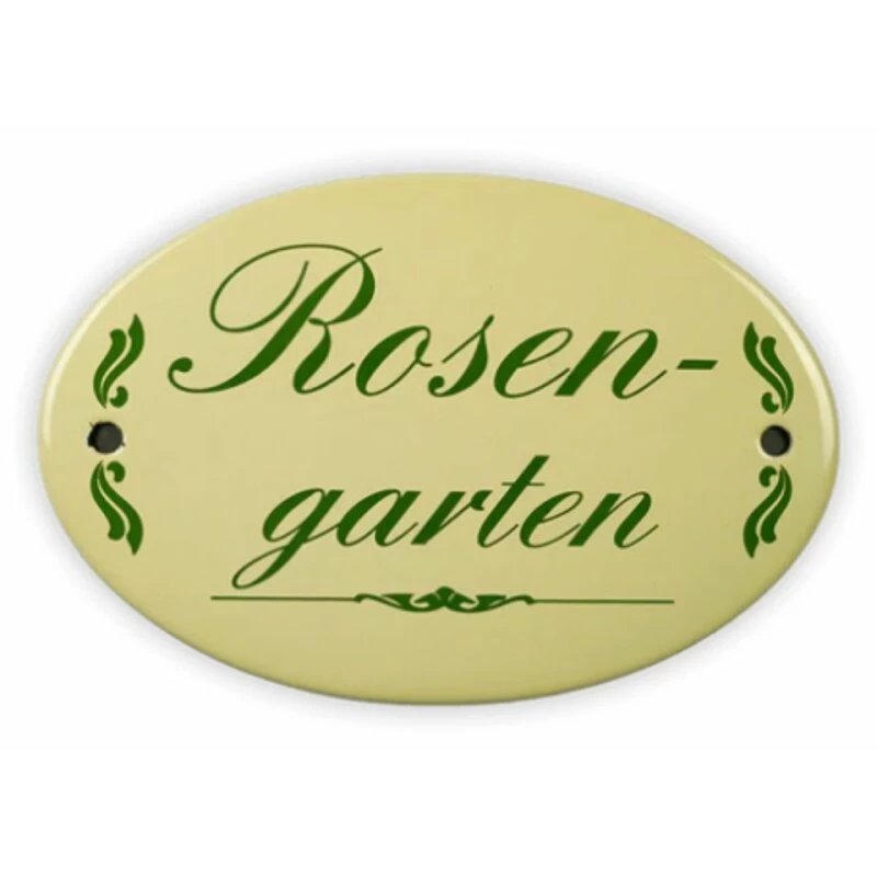 Emailschild oval, 15 x 10 cm, Rosengarten