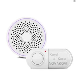 Funktürglocke mit großer Reichweite und einfacher Installation. Der Empfänger kann einfach in eine Steckdose gesteckt werden. Spritzwasser-geschützter Sender mit Beschriftungsfeld. Lieferung inkl. 1 Sender.
