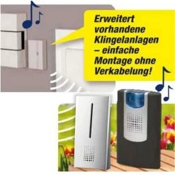 INFO: Kann bei extrem lauten Geräuschen (z.B. Hundegebell) zu einer Fehlauslösung der Klingel führen).