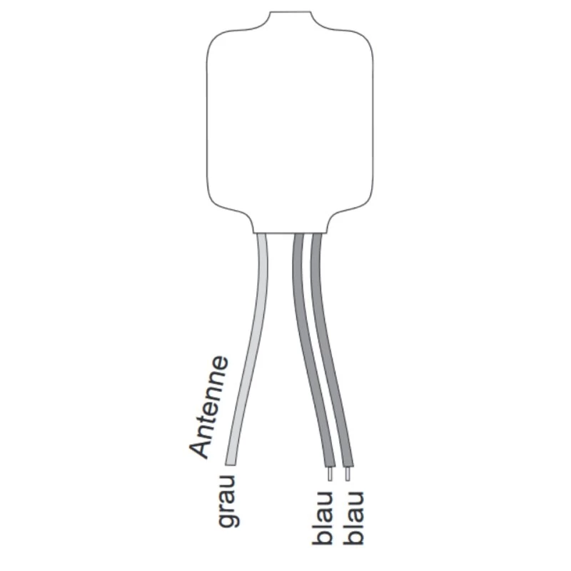Der Einbausender kann an eine geschaltete Spannungsquelle von 5 V bis 24 V AC oder von 6 V bis 32 V DC angeschlossen werden. Sobald am Sender Spannung anliegt, wird für maximal 10 Sekunden ein Telegramm mit dem Sendecode A an den Empfänger gesendet.