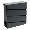 Dieser Universalkasten besteht aus beschichtetem Stahl – Anthrazit grau pulverbeschichtet RAL 7016 Feinstruktur – Qualitätsprodukt – Wetterfest. Die Einwurfklappe ist mit einer Geräuschdämmung ausgestattet. Die Box verfügt zudem über einen großen Briefschlitz, ein Namensschildfenster / oder auch Sichtfenster um einen Befüllungszustand feststellen zu können. Die vordere Entnahmeklappe ist abschließbar.