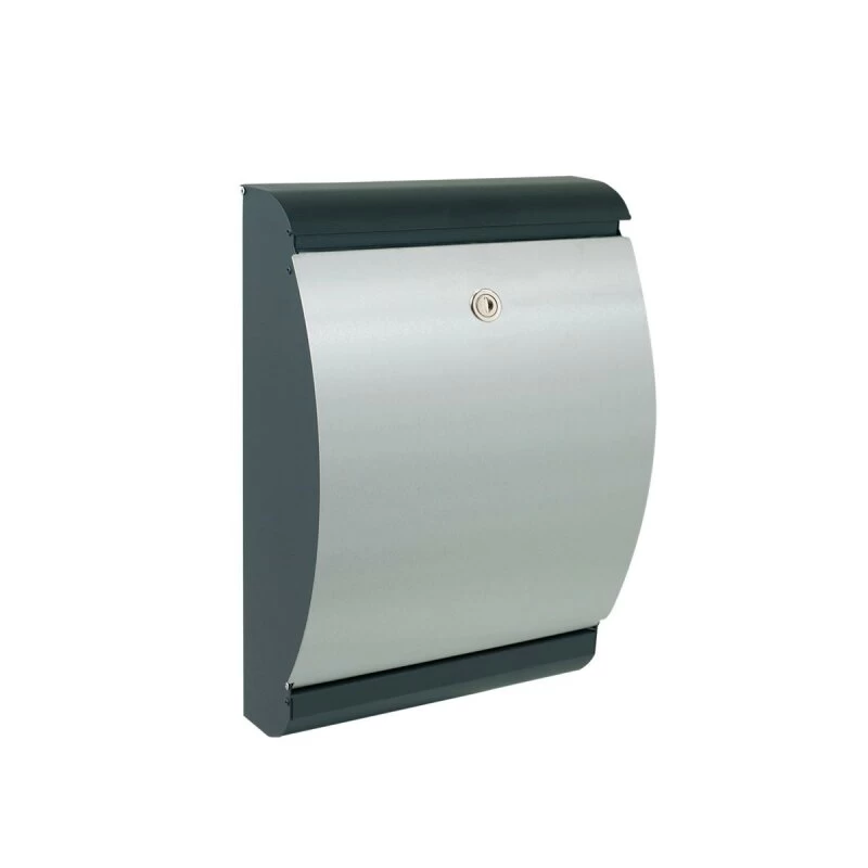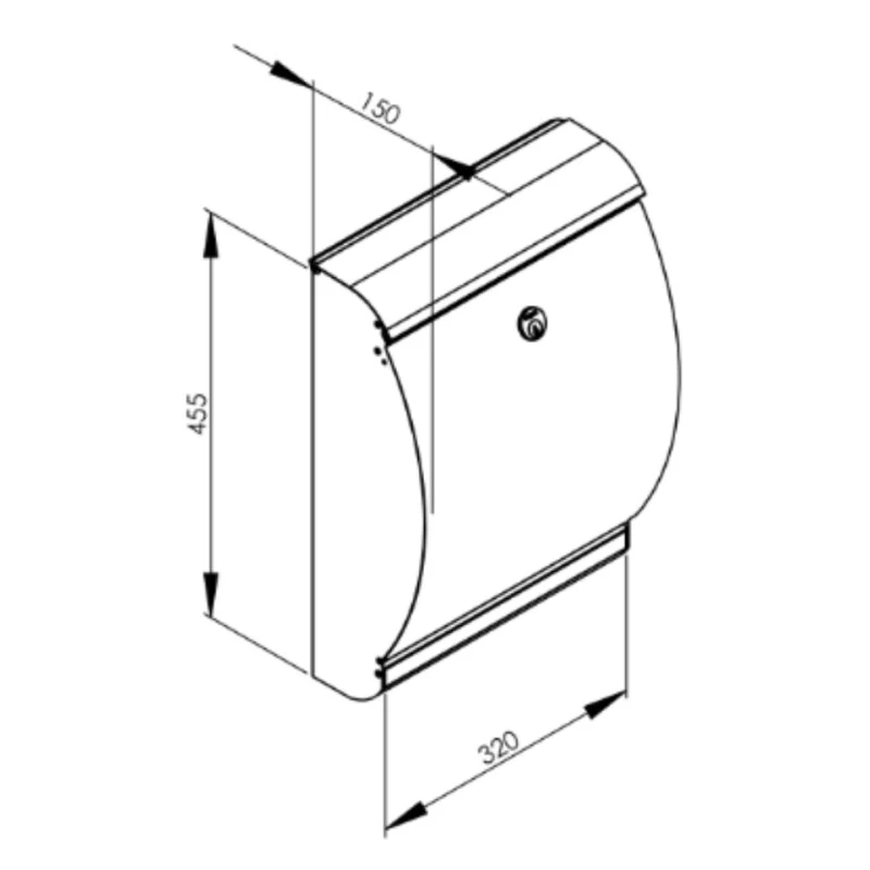 Briefkasten mit zwanglosen runden Formen in gefälligem Design. Briefeinwurf unter der oberen Einwurfklappe, Postentnahme über die optisch abgesetzte Kipptür.