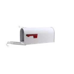 Hergestellt aus massivem Aluminium, Oberfläche weiß matt lackiert, rotes stabiles Alufähnchen, voll montiert mit angenieteten Griffen. Besonders hochwertige Ausführung aus dickerem Aluminiumblech, Frontklappe mit zweitem inneren Rand, so dass absolut kein Regen eindringen kann. Besonders hochwertig verarbeit und langlebig da absolut rostfrei und wetterfest.