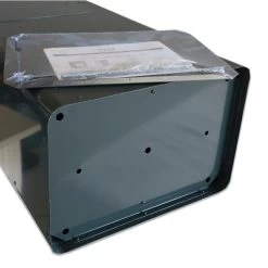- 5. Montieren Sie den Briefkasten. Verwenden Sie bitte unbedingt die Abstandhalter, damit sichergestellt ist, dass der Briefkasten sich einwandfrei öffnen lässt. Durch die verwendeten Abstandhalter entsteht unter Umständen der Eindruck, dass die Schrauben nicht fest genug angezogen sind. Bitte achten Sie bei der Montage darauf, dass Sie die Abstandhalter nicht zu stark komprimieren, da sich der Briefkasten sonst nicht einwandfrei öffnen lässt. Sollte dies der Fall sein, die Schrauben bitte wieder ein wenig lösen.