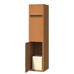 Die Paketbox besticht durch sein großes Fassungsvermögen kombiniert mit klaren Strukturen in Blockform. Die Paketbox ist ein freistehender Einzelbriefkasten mit integriertem Paketfach zur Bodenmontage auf freier Fläche. Einwurf und Entnahme erfolgen bei diesem Modell von vorne über die Einwurfklappe und eine aufgesetzte Frontklappe. Das Schloss befindet sich witterungsgeschützt unterhalb der Einwurfklappe, wodurch auch das klare Design nicht unterbrochen wird.