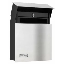 Premium Briefkasten Front Edelstahl – Korpus schwarz mit Zeitungsfach