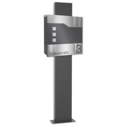 Säulenbriefkasten inkl. Zeitungsfach RAL 7016 anthrazit grau mit Edelstahl Laser Namensblende
