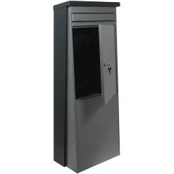 In diesen großen, freistehenden Designbriefkasten aus Skandinavien geht richtig viel Post rein. Der Zwischenboden des Standbriefkastens wird in der Höhe der Tür mit Gefälle nach hinten gelegt. Für Firmen mit viel Postaufkommen oder für die Urlaubszeit, kann man den Boden zusätzlich nach unten absenken und damit mehr Platz für Briefe und kleine Pakete (müssen durch die Einwurfklappe passen!) schaffen. Der SafePost Eurotrend No.1 ist durch die außergewöhnliche Zweifarbeitkeit sehr elegant und ein edles Schmuckstück in Ihrem Vorgarten.