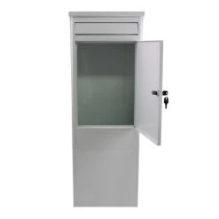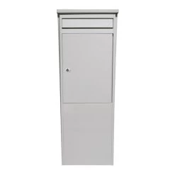 In diesen großen, freistehenden Designbriefkasten aus Skandinavien geht richtig viel Post rein. Der Zwischenboden des Standbriefkastens wird in der Höhe der Tür mit Gefälle nach hinten gelegt. Für Firmen mit viel Postaufkommen oder für die Urlaubszeit, kann man den Boden zusätzlich nach unten absenken und damit mehr Platz für Briefe und kleine Pakete (müssen durch die Einwurfklappe passen!) schaffen. Der SafePost Eurotrend No.1 ist durch die außergewöhnliche Zweifarbeitkeit sehr elegant und ein edles Schmuckstück in Ihrem Vorgarten.
