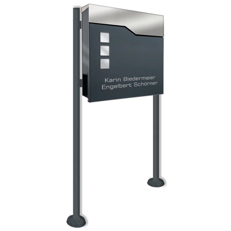 Standbriefkasten Set Andy in ANTHRAZIT GRAU RAL 7016 pulverbeschichtet mit Beschriftung