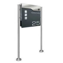 Designer Standbriefkasten aus galvanisiertem Stahl mit pulverbeschichteter Oberfläche in zeitlos schicker Optik. Der Briefkasten verfügt über einen großen Briefschlitz, so dass auch größere Sendungen eingeworfen werden können. Montage-Material ist ebenfalls im Lieferumfang enthalten. Weiter befindet sich auf der unteren Seite ein Zeitungsfach, so dass Zeitungen nicht mehr vor der Haustüre im Nassen abgelegt werden müssen, sondern einen trockenen Platz haben, bis sie ins Haus geholt werden.