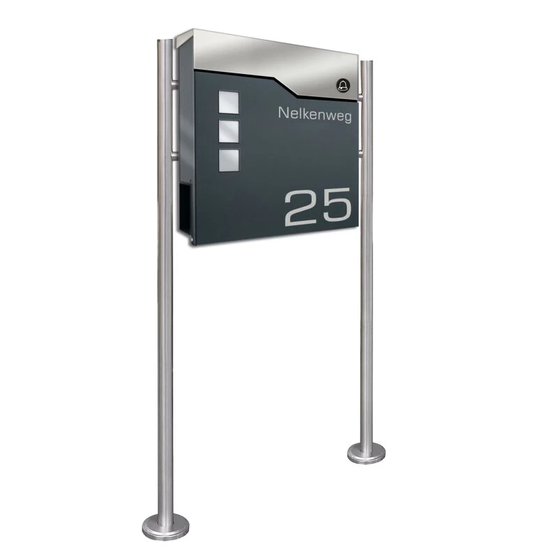 Standbriefkasten mit FUNKKLINGEL ANTHRAZIT Postkasten Briefkasten Helena