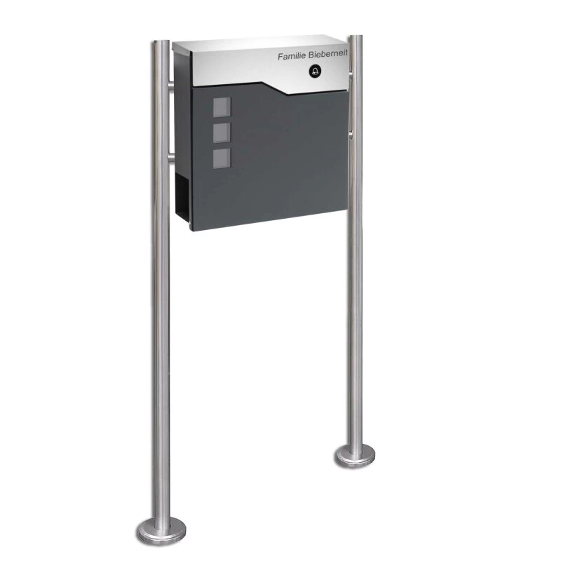 Standbriefkasten mit FUNKKLINGEL ANTHRAZIT Postkasten Briefkasten Tomus