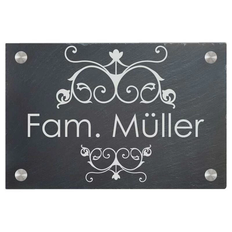 Türschild Aus Natur Schiefer 300×200 Mm Inkl. Beschriftung Girlande