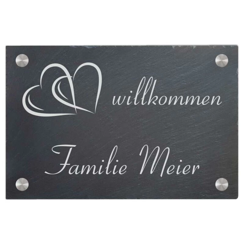 Türschild Aus Natur Schiefer 300×200 Mm Inkl. Beschriftung Herz