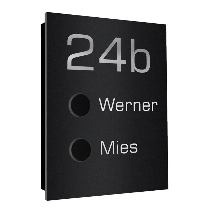 Der Klingelknopf besteht ebenfalls aus schwarzem Acrylglas. Sehr edle Optik.