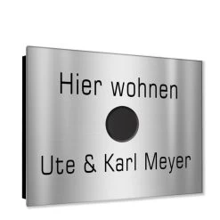 Die Schriftfarbe ist schwarz in der Edelstahlversion. Bei pulverbeschichteten Typen ist diese edelstahlfarben.