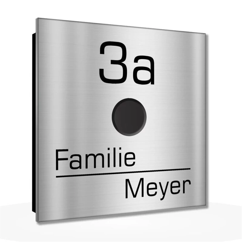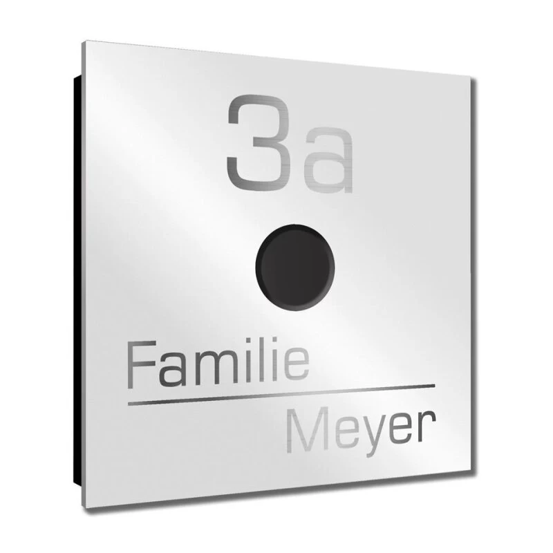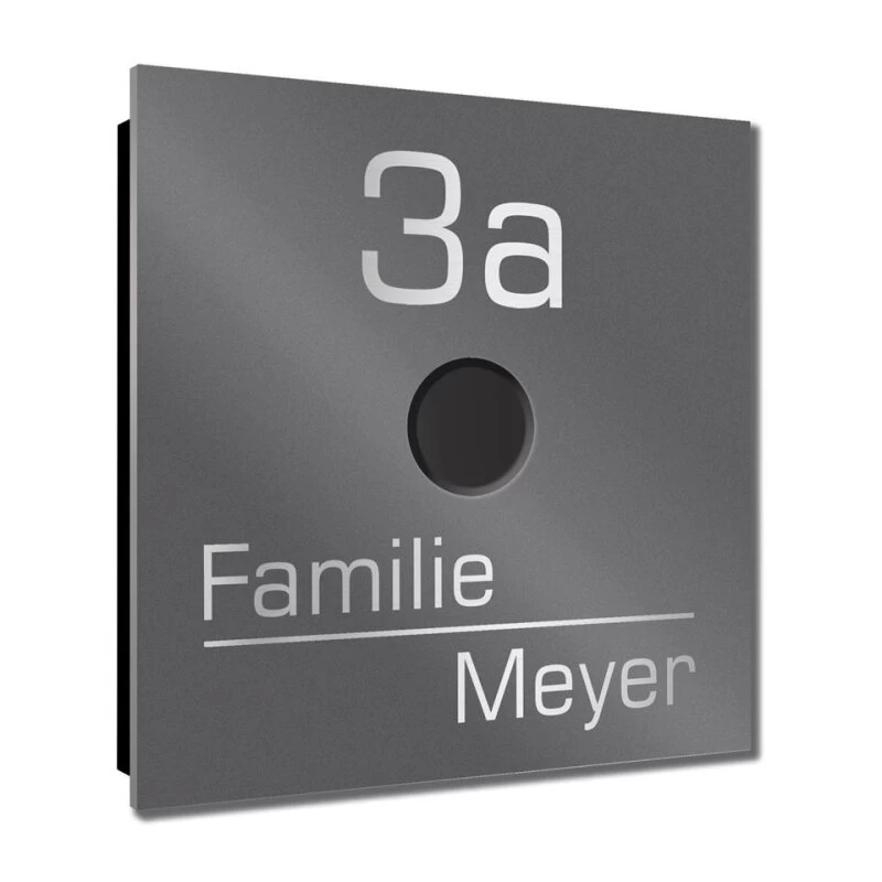 Der Klingelknopf besteht ebenfalls aus schwarzem Acrylglas. Sehr edle Optik.