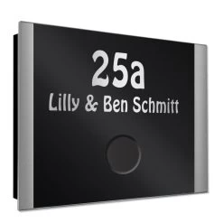 Die Schriftfarbe ist schwarz in der Edelstahlversion. Bei pulverbeschichteten Typen ist diese edelstahlfarben.