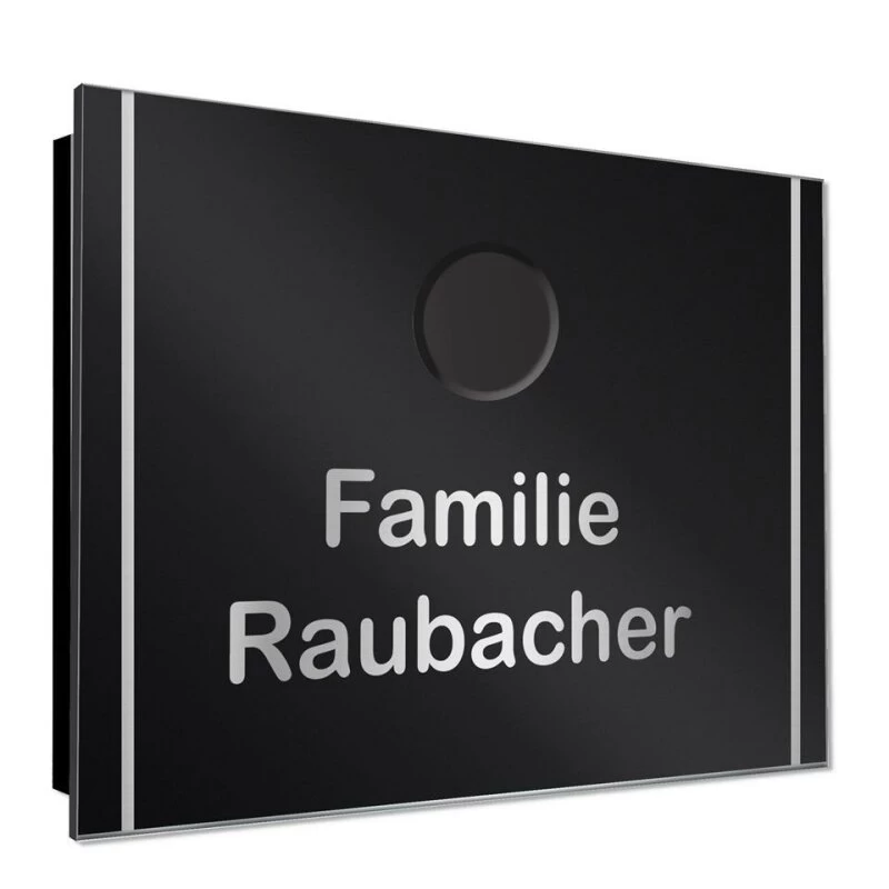Der Klingelknopf besteht ebenfalls aus schwarzem Acrylglas. Sehr edle Optik.