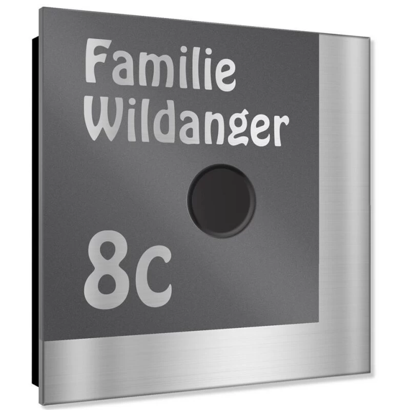 Der Klingelknopf besteht ebenfalls aus schwarzem Acrylglas. Sehr edle Optik.